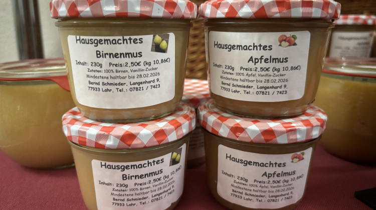 Bei uns gibt es neu Hausgemachtes Apfelmus und Birnenmus. Im kleinen (200g) oder großen (500g) Glas.